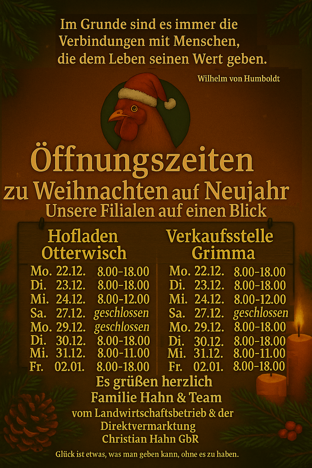 Unsere Öffnungszeiten zwischen den Jahren – Standorte Grimma & Otterwisch